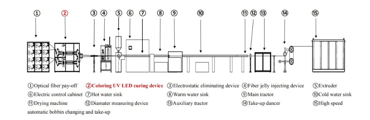 High-efficiency fiber coloring & loose tube tandem line